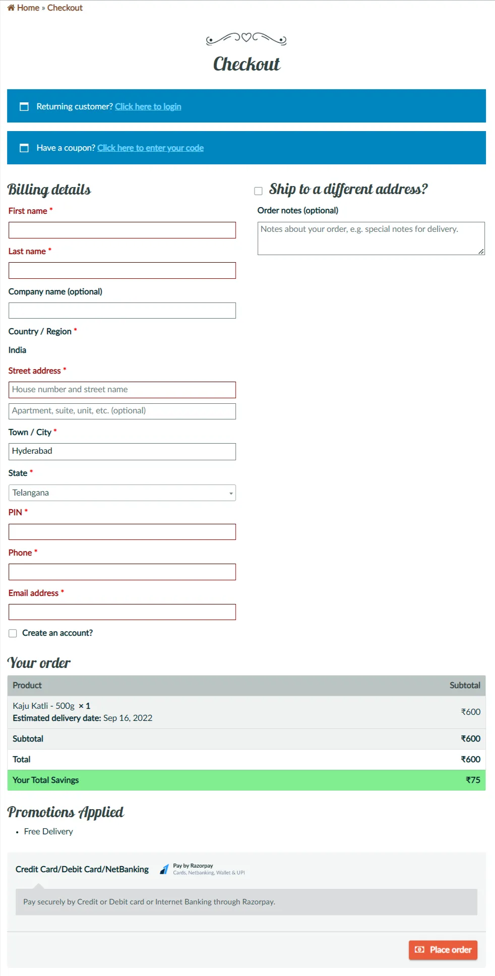 E-Commerce portal, customers can visit the business portal and place orders for edible